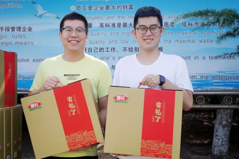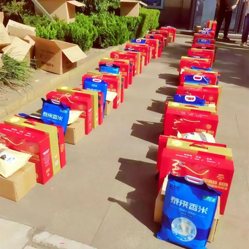沉甸甸的禮品給大家?guī)砹藲g笑,也給員工帶來了滿滿的感動。